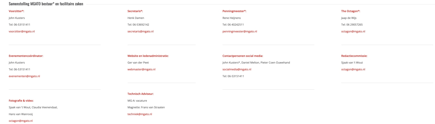 Samenstelling MGATO bestuur* en facilitaire zaken
